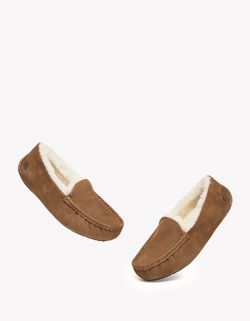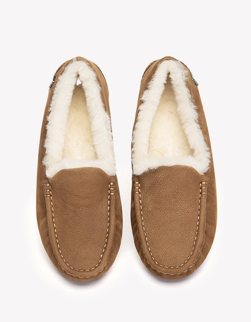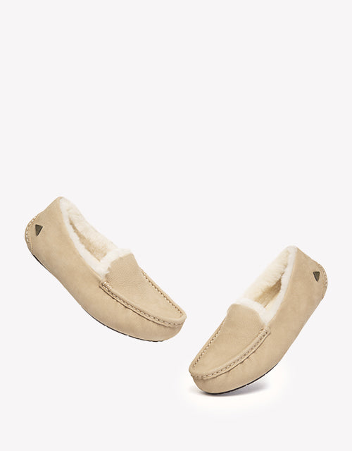 Slip into effortless comfort with the EVERAU Pielet Moccasin Slippers. Crafted from premium cow suede and lined with plush sheepskin wool, they deliver warmth and softness with a subtle vintage charm. Finished with a cushioned wool insole and a lightweight rubber sole, they offer simple support and everyday comfort you’ll reach for again and again.