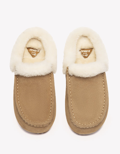 Stay warm and stylish with the EVERAU Sheepskin Moccasin Slippers. A plush wool collar wraps around the opening for extra warmth and a touch of playful charm, while the braided trim adds handcrafted detail to the soft cow suede upper. Fully lined with genuine sheepskin, this pair delivers the perfect balance of cozy comfort and casual ease.
