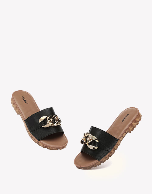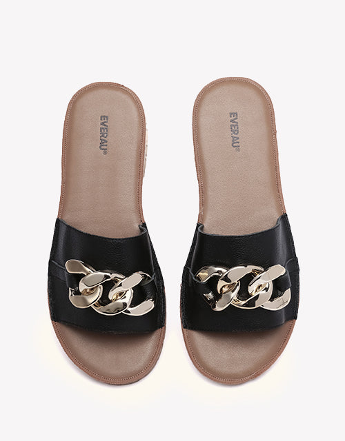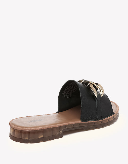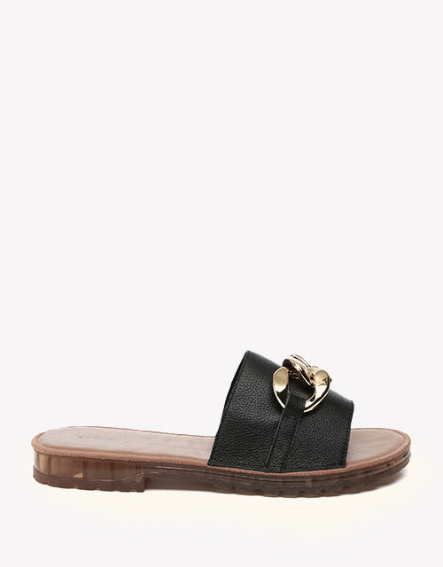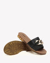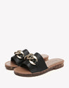 Walk on cloud-soft comfort with our Jianna Leather Slides. Featuring a plush sponge footbed and sleek gold-tone buckle accents, these summer-ready sandals are perfect for beach days or casual city strolls.